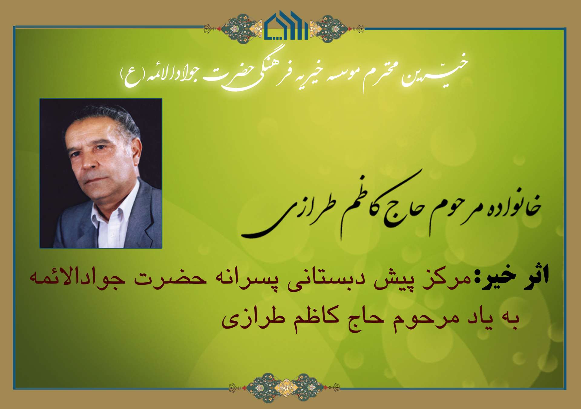 - خانواده مرحوم حاج کاظم طرازی : ساخت مرکز پیش دبستانی پسرانه حضرت جوادالائمه