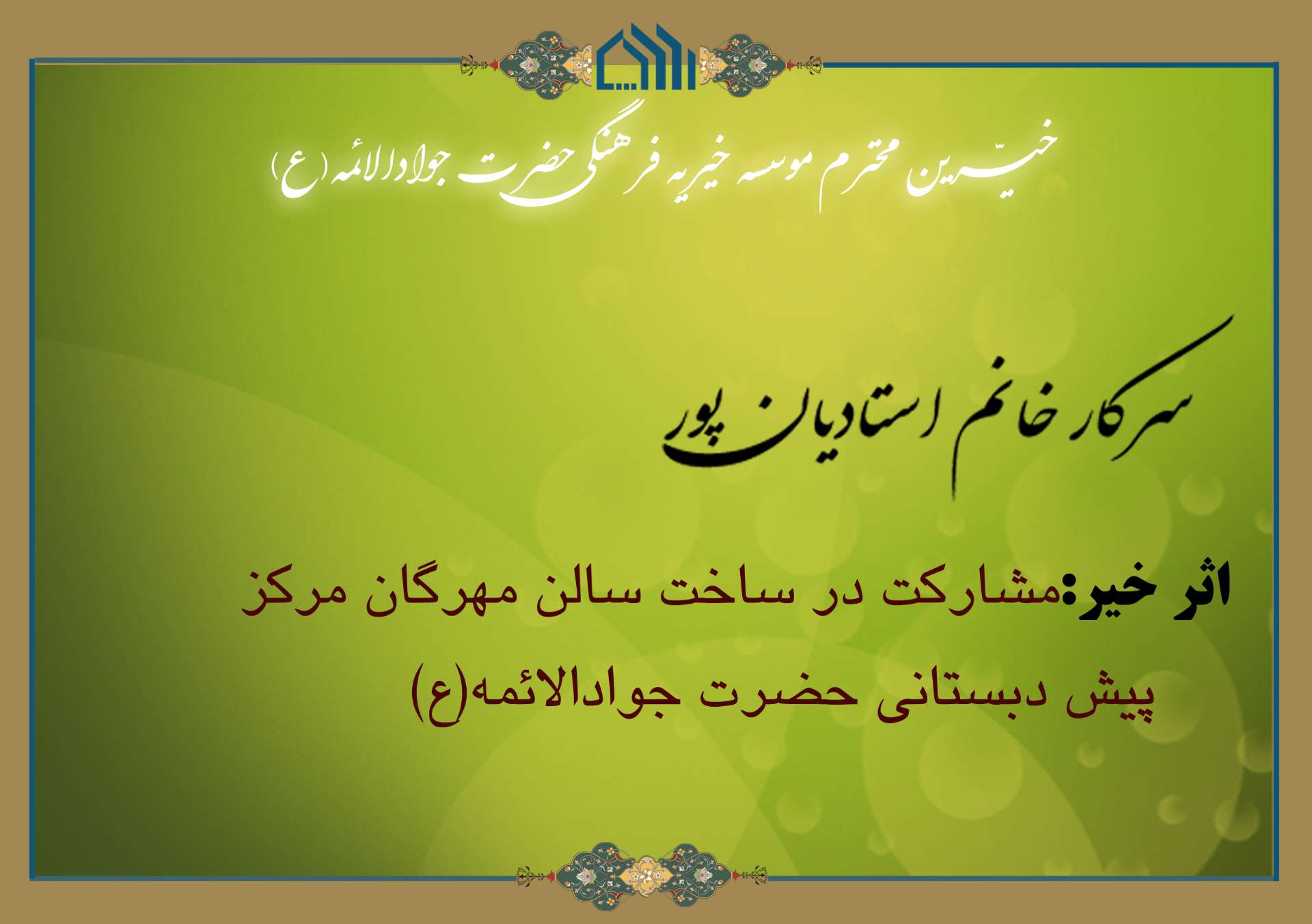 - سرکارخانم استادیان پور: ساخت سالن مهرگان مرکز پیش دبستانی حضرت جواد الائمه