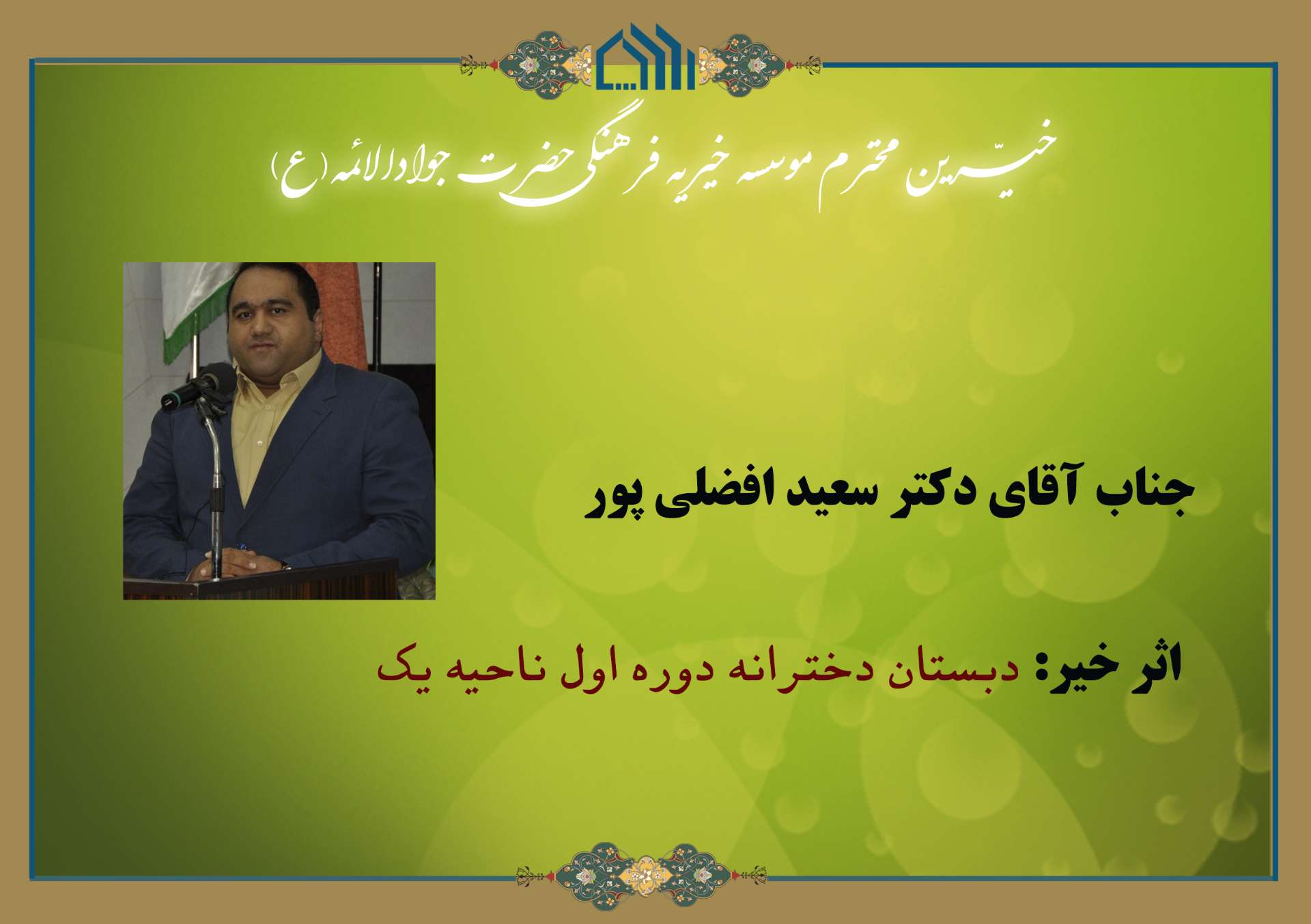 - شادروان مهندس سعید افضلی پور: اهدای دبستان دوره اول ناحیه یک