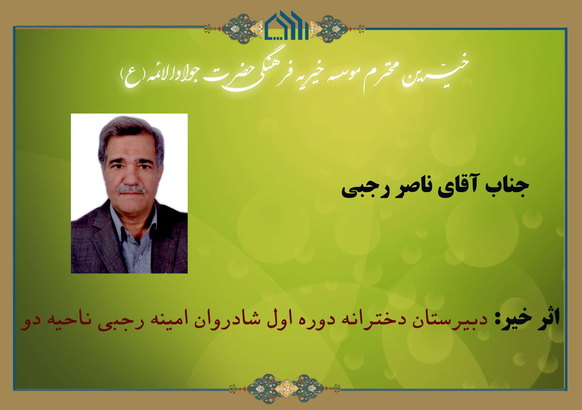 - جناب آقای مهندس ناصر رجبی:تامین قسمتی از هزینه ساختمان دبیرستان دخترانه دوره اول