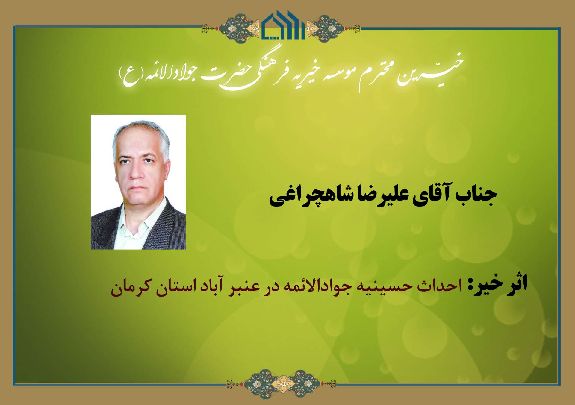 - جناب آقای علیرضا شاهچراغی :ساخت یک باب مسجد در عنبرآباد استان کرمان