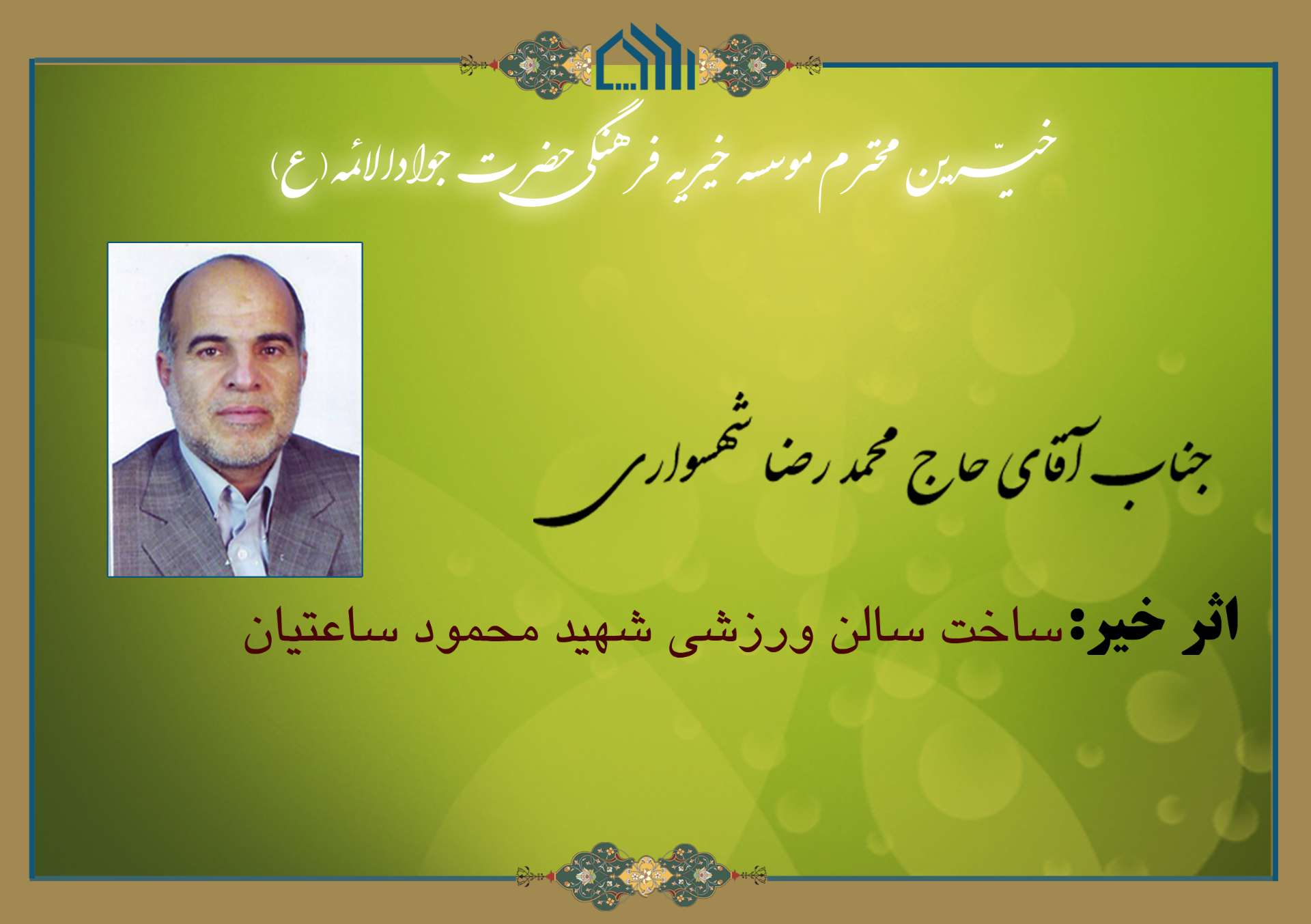 - حاج محمدرضا شهسواری: ساخت سالن ورزشی شهید محمود ساعتیان