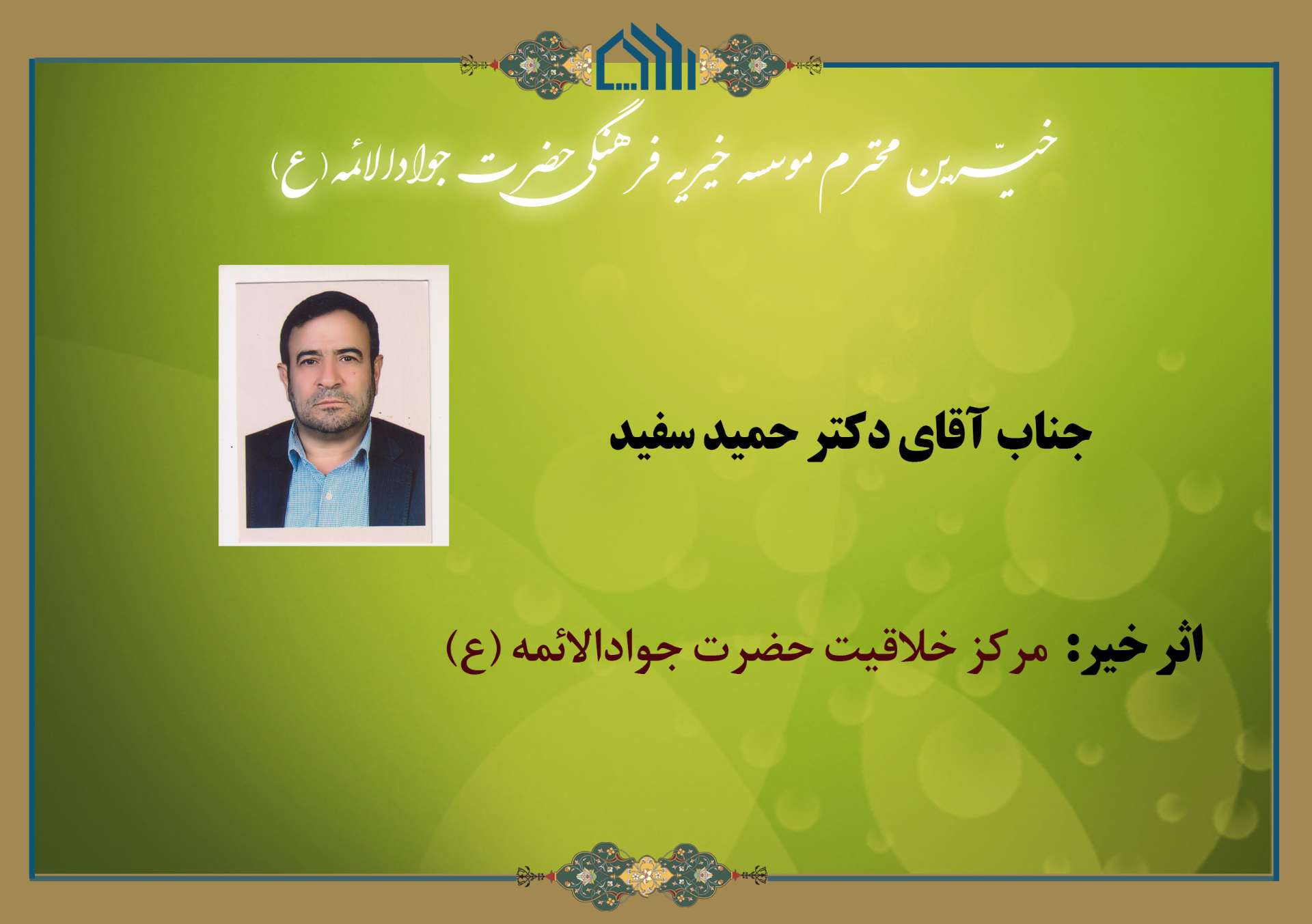 - جناب آقای دکتر حمید سفید : مرکز خلاقیت حضرت جوادالائمه (ع)