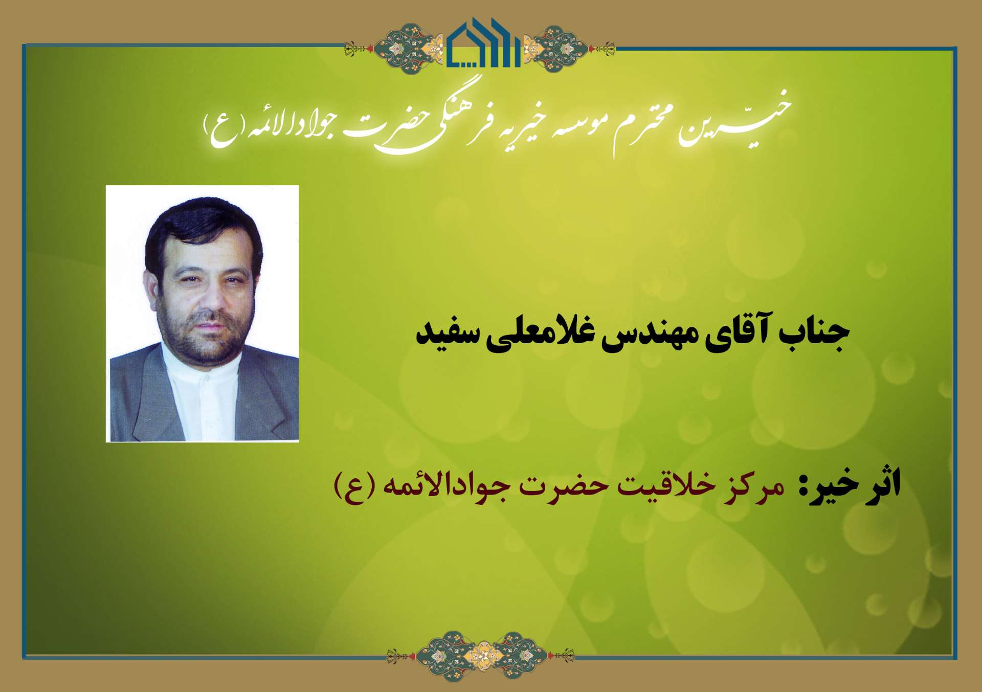 - جناب آقای مهندس غلامعلی سفید: مرکز خلاقیت حضرت جوادالائمه (ع)