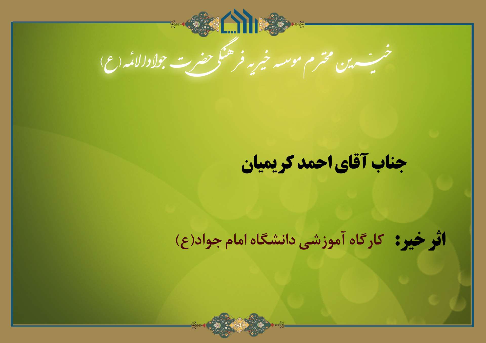- جناب آقای احمد کریمیان: کارگاه آموزشی دانشگاه امام جواد (ع)