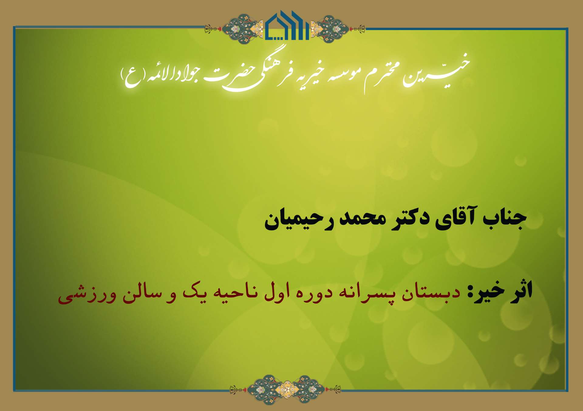 - جناب آقای دکتر محمد رحیمیان : دبستان پسرانه دوره اول ناحیه یک و سالن ورزشی