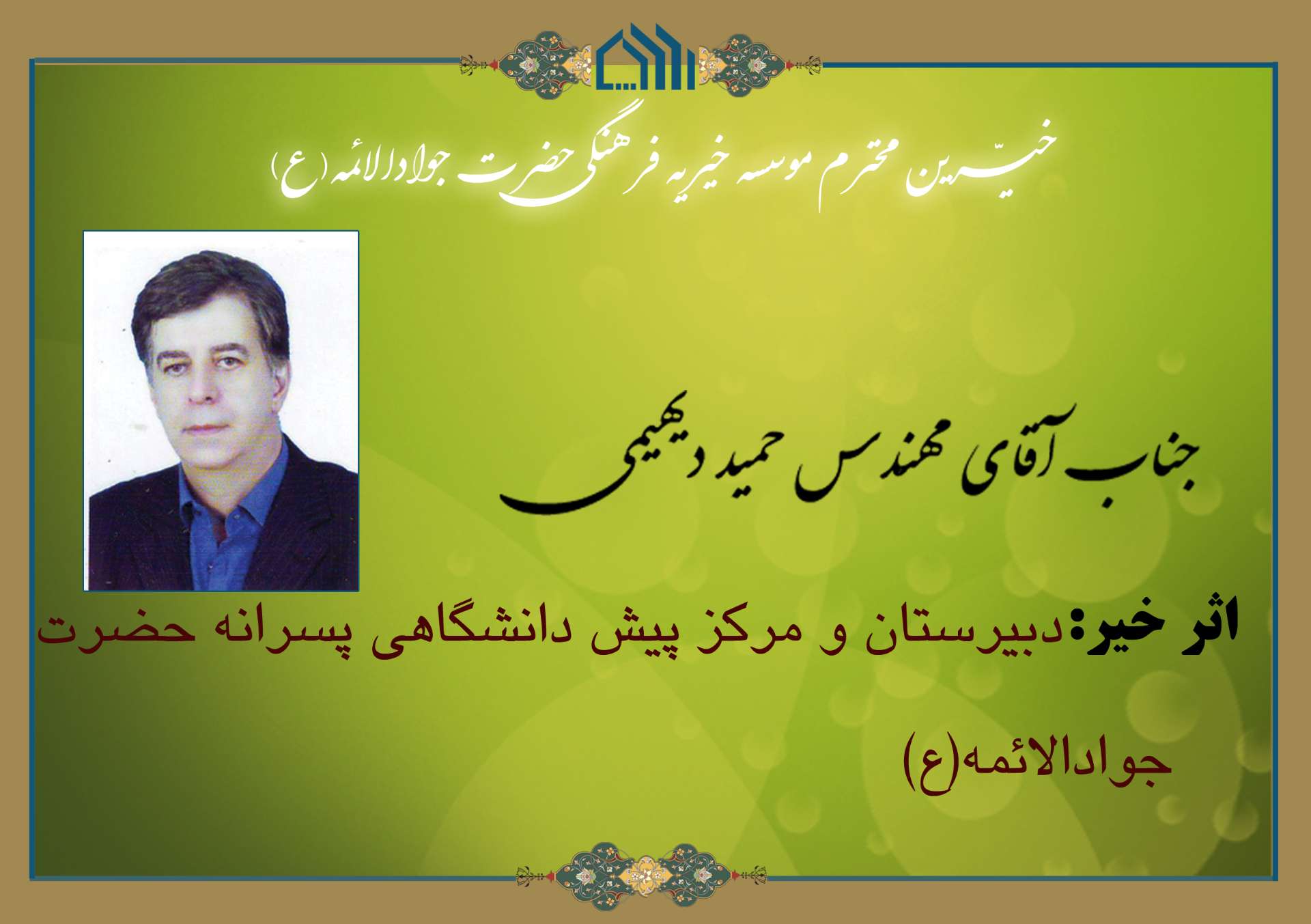 - جناب آقای مهندس حمیددیهیمی: ساخت دبیرستان و مرکز پیش دانشگاهی پسرانه حضرت جوادالائمه